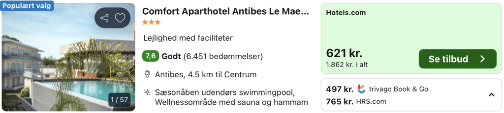 | Bemærk: Husk at lade søgningen på fly og hotel blive helt færdig. Vælg “Vores laveste pris” på trivago for at opnå den bedste pris på hotellet.