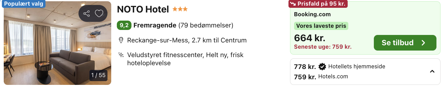 Hvis rejsen er med “Vis fly” og “Vis hotel” link, så er der tale om en sammensat rejse. Det vil sige at fly og hotel skal bestilles hver for sig. Prisen vi angiver vil dog være samlet for fly og hotel med mindre andet er angivet.