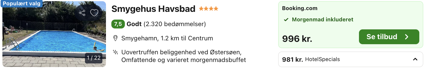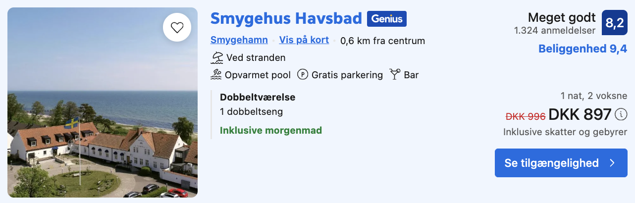 Vælg booking.com på trivago og opret en gratis bruger eller log ind. Derved opnås den billigste pris.