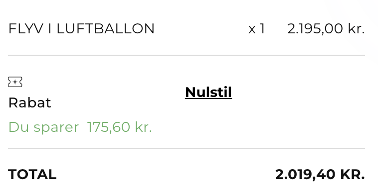 - Ca. 60 minutters flyvning i luftballon for 1 person