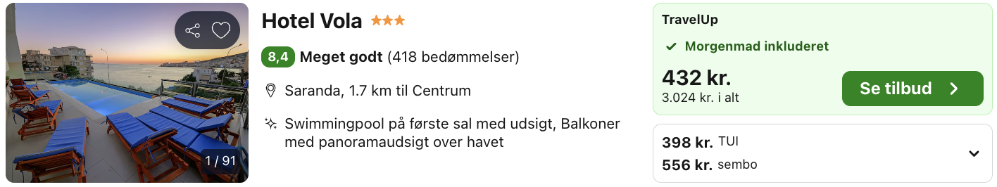 Hvis rejsen er med “Vis rejse” link, så er der tale om en pakkerejse, hvor fly og hotel bestilles på en gang.