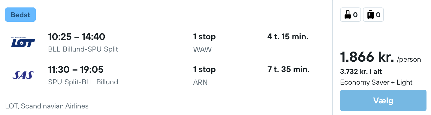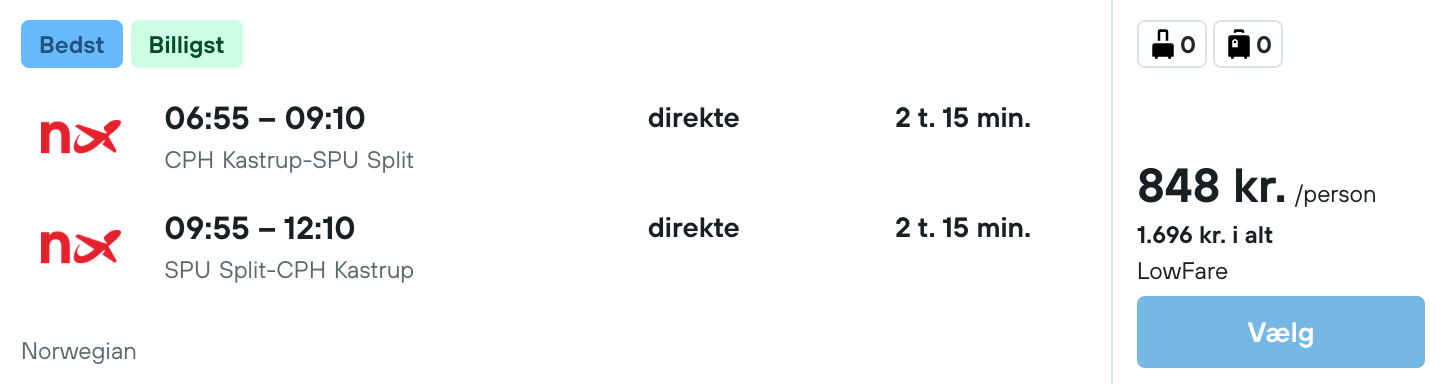 Flyprisen inkluderer kun en lille taske, men bagage kan tilkøbes.