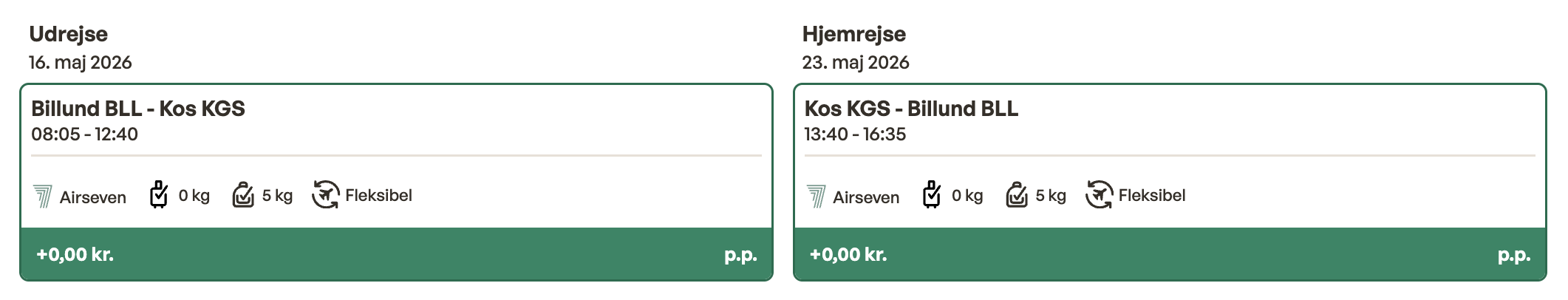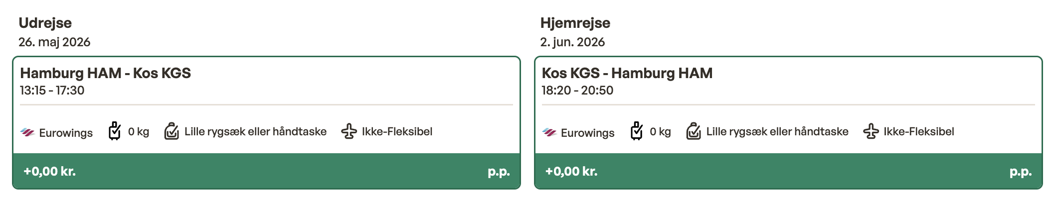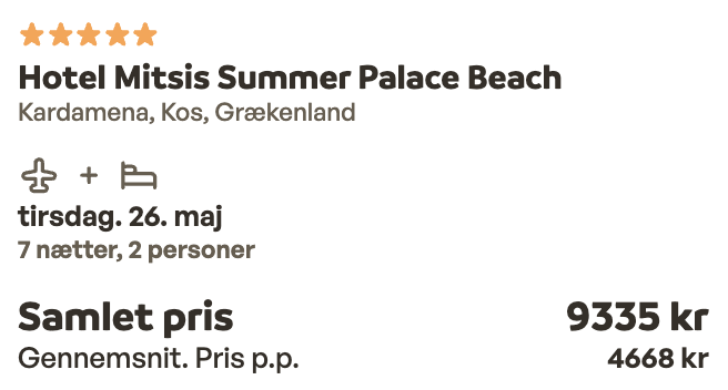 Hvis rejsen er med “Vis rejse” link, så er der tale om en pakkerejse, hvor fly og hotel bestilles på en gang.