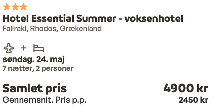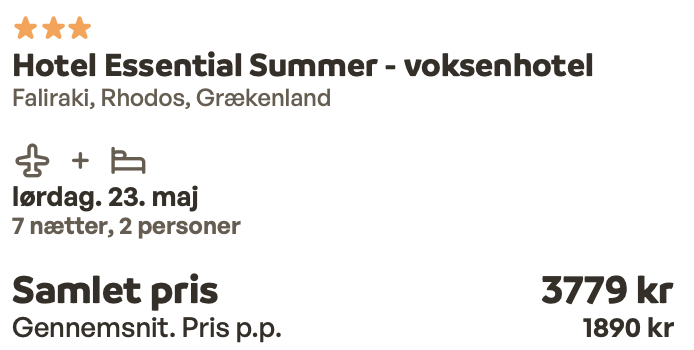 Hvis rejsen er med “Vis rejse” link, så er der tale om en pakkerejse, hvor fly og hotel bestilles på en gang.