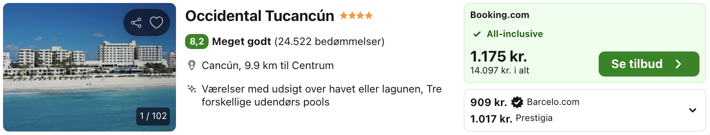 13 dage i Cancun med all inclusive for kun 9.827,- per person inkl. fly og 4-stjernet resort med pools, all inclusive og beliggenhed direkte på stranden!