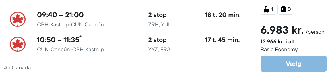 Flyprisen inkluderer kun håndbagage, men bagage kan tilkøbes.