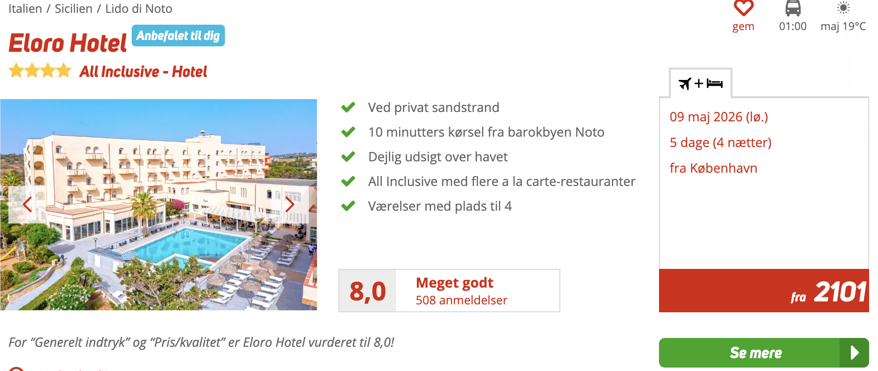 5 dage på Sicilien med all inclusive for kun 2.101,- per person inkl. fly og 4-stjernet hotel med all inclusive og god beliggenhed ved stranden!