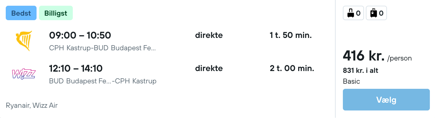 På vores flysøgemaskine har vi fundet billige billetter fra Billund og København til Budapest:
