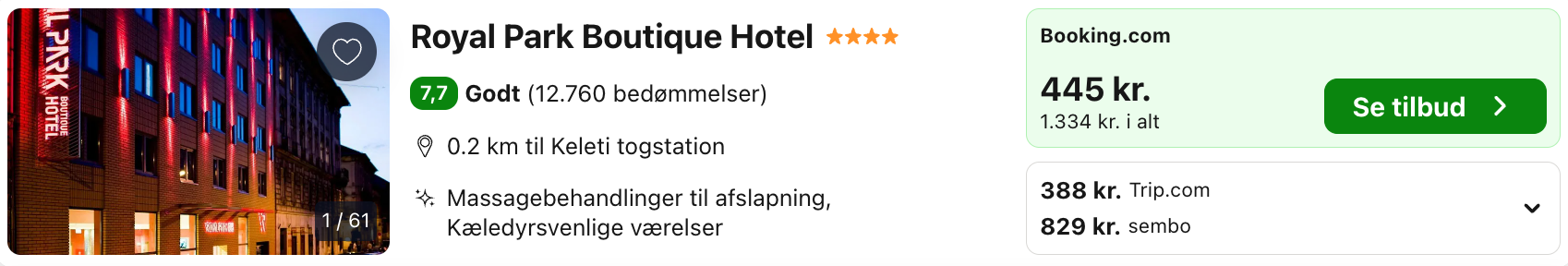| Bemærk: Husk at lade søgningen på fly og hotel blive helt færdig. Vælg Laveste Pris på Trivago.