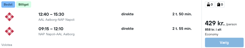 Vi har fundet billige flybilletter fra Aalborg og København til Napoli.