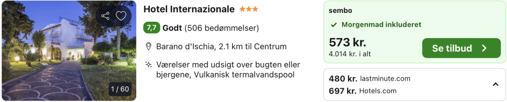 1 uge på Ischia for kun 2.109,- per person inkl. fly og skønt 3-stjernet hotel med pool!