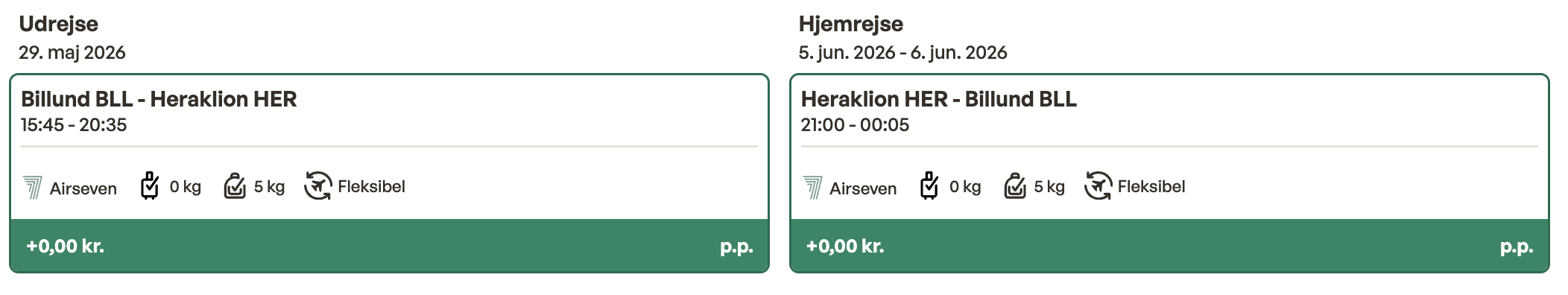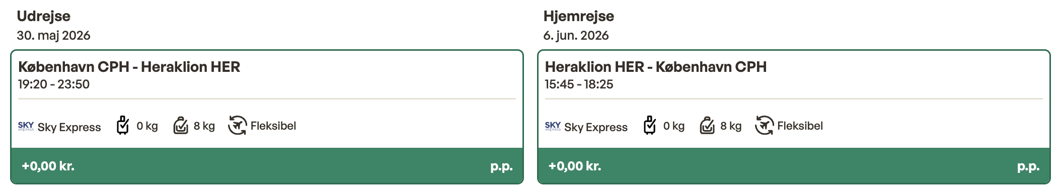 Flyprisen inkluderer kun en lille taske, men bagage kan tilkøbes.