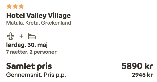 | Bemærk: Sunweb viser den samlede pris for 2 personer.
