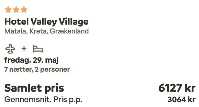 1 uge på Kreta med halvpension for kun 2.945,- inkl. fly og 3-stjernet hotel med pool!
