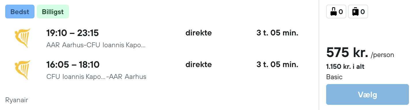 Vi har på vores flysøgningsmaskine fundet billige billetter fra Aarhus til Korfu: