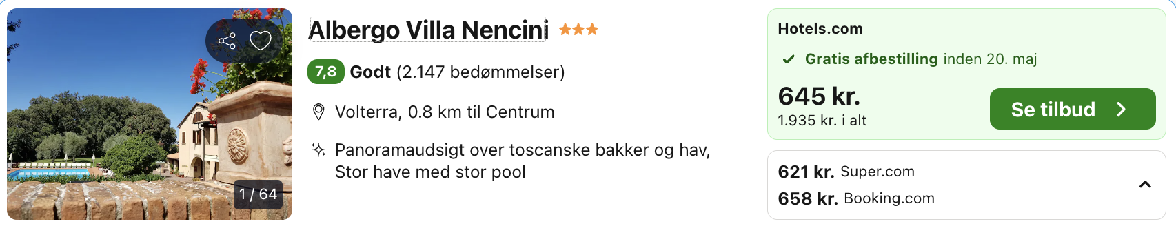 4 dage i Volterra for kun 1.631,- per person inkl. fly og godt hotel med fantastisk udsigt over toscanske bakker!