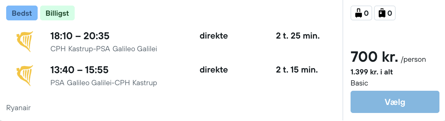 Flyprisen inkluderer kun en lille taske, men bagage kan tilkøbes.