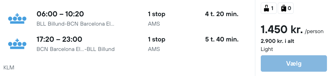 Flyprisen inkluderer kun en lille taske, men bagage kan tilkøbes.