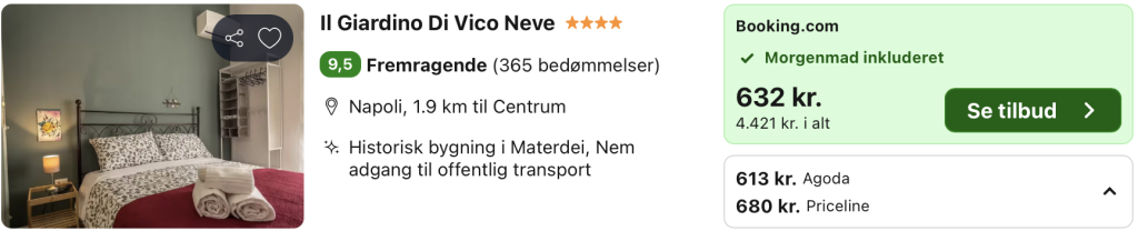 | Bemærk: Husk at lade søgningen blive helt færdig samt at vælge laveste Pris på Trivago.