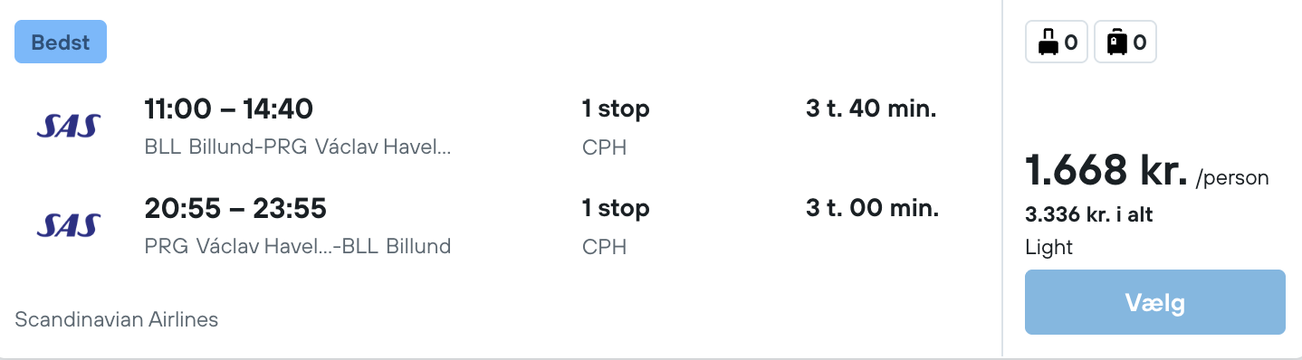 Flyprisen inkluderer kun en lille taske, men bagage kan tilkøbes.