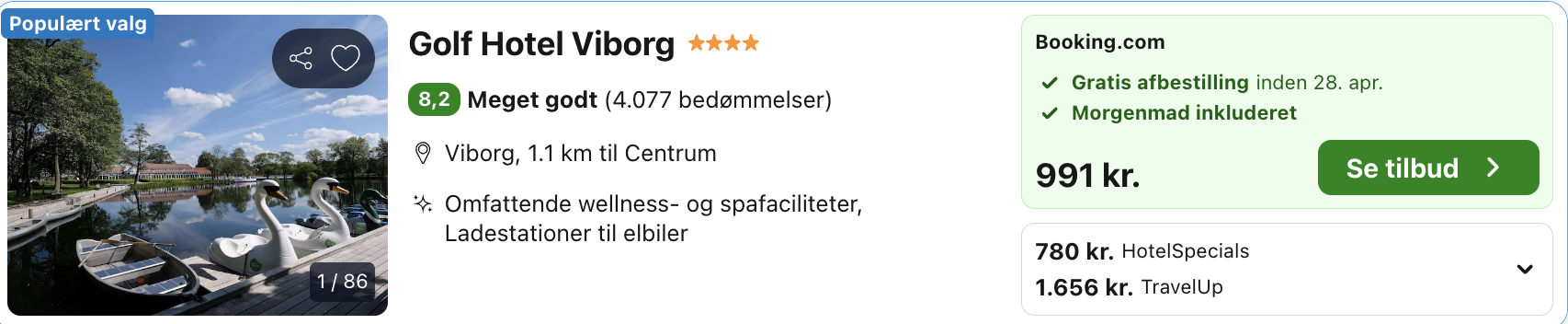 Bemærk: Den samlede pris for weekendopholdet er 780,- for 2 personer i et dobbeltværelse, hvilket svarer til 390,- per person. Der kan være mindre forskelle på priser på mobil og pc. Undersøg med fordel, hvor det er billigst inden bestilling. Rejs365 er ikke et rejsebureau, men en rejseside, der finder gode tilbud! – Vi modtager kommission, men det påvirker ikke din pris! Læs mere her