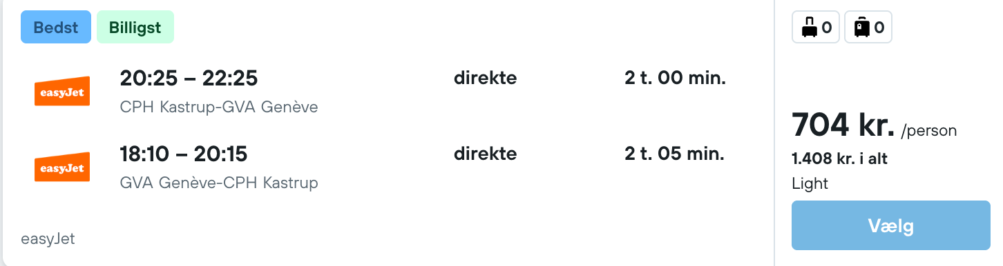 Flyprisen inkluderer kun en lille taske, men bagage kan tilkøbes.