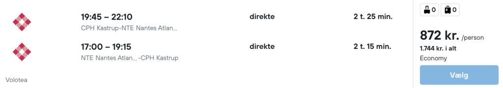 På vores flysøgningsmaskine har vi fundet billige flybilletter fra København til Nantes: