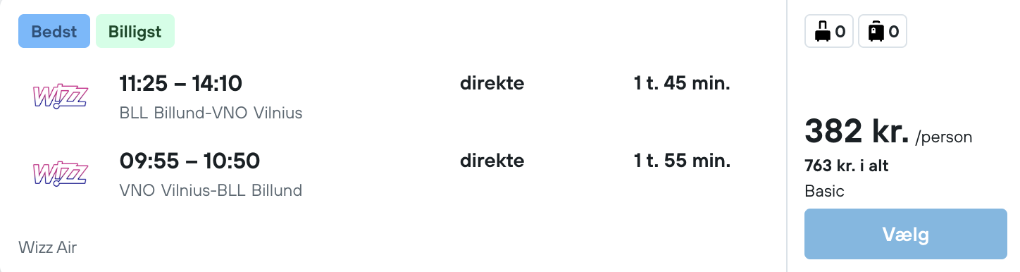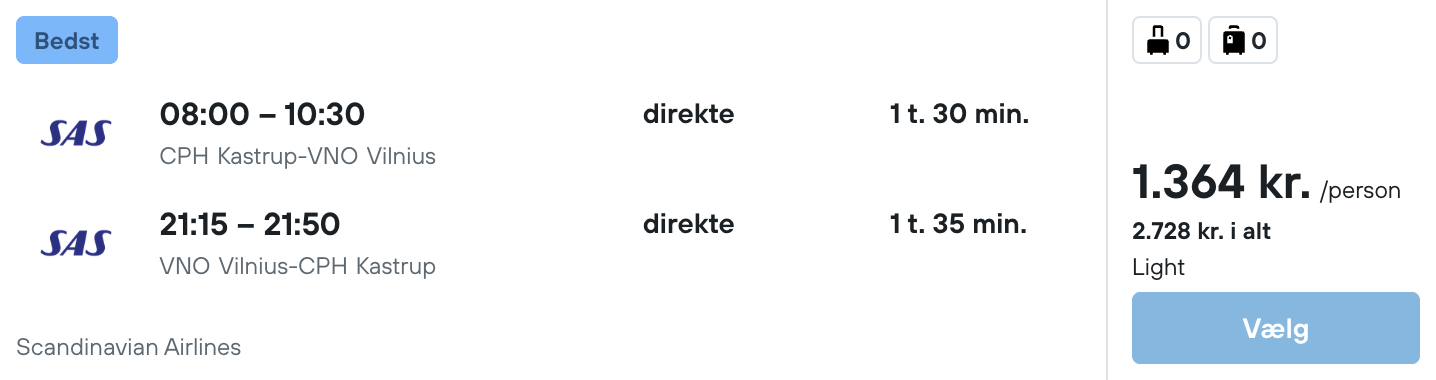 Vi har fundet billige flybilletter fra Billund og København til Vilnius: