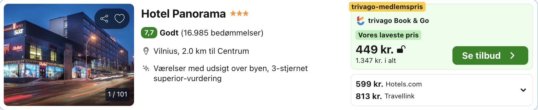 | Bemærk: Husk at logge ind / oprette en gratis bruger på trivago samt hos hoteludbyderen. Derved opnås den bedste pris!
