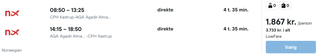 Vi har fundet billige flybilletter fra København til Agadir:
