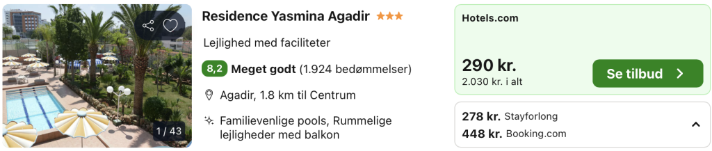 1 uge i Agadir for kun 2.841,- per person inkl. fly og 3-stjernet hotel med pool og god beliggenhed!