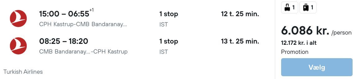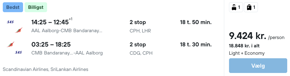 På vores flysøgemaskine har vi fundet billige billetter fra København og Aalborg til Sri Lanka.