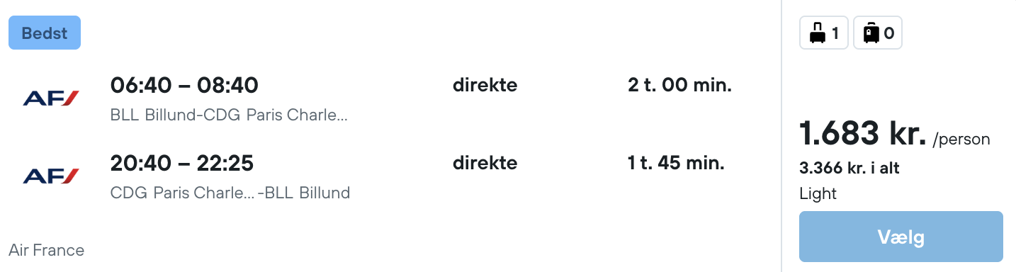 På vores flysøgemaskine har vi fundet billige flybilletter fra København og Billund til Paris.