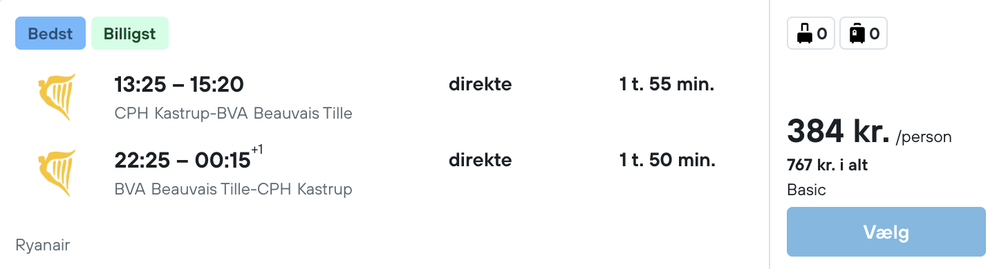 Flyprisen inkluderer kun en lille taske, men bagage kan tilkøbes.