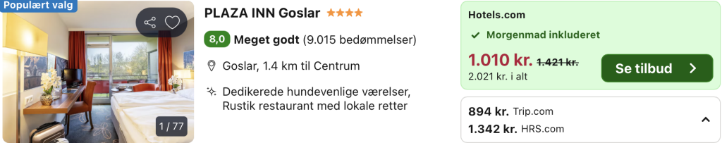 Vi har taget udgangspunkt i et ophold fra den 12. – 14. juni på Plaza Inn Goslar, der ligger i den charmerende middelalderby Goslar og er et komfortabelt valg for gæster, der ønsker et afslappende ophold tæt på både kultur og natur. Hotellet byder på lyse og rummelige værelser, der er indrettet i en moderne og enkel stil med alt, hvad man behøver for et behageligt ophold. Mange værelser har udsigt til de grønne omgivelser, hvilket giver en rolig atmosfære efter en dag med oplevelser.
