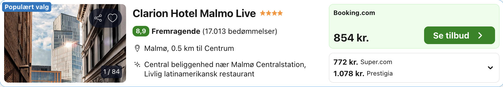 Bemærk: Den samlede pris for opholdet er 772,- for 2 personer i et dobbeltværelse, hvilket svarer til 386,- per person. Der kan være mindre prisforskelle på mobil og pc. Undersøg med fordel, hvor det er billigst inden bestilling. Vælg “Vores laveste pris” på trivago, for at opnå den bedste pris på hotellet. Rejs365 er ikke et rejsebureau, men en rejseside, der finder gode tilbud! – Vi modtager kommission, men det påvirker ikke din pris! Læs mere her