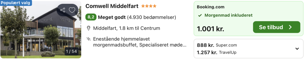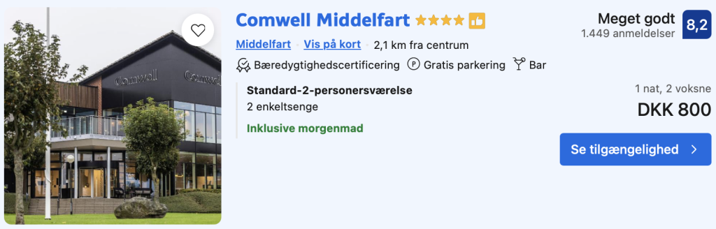 Husk at logge ind / oprette en gratis bruger på trivago samt hos Booking.com. Derved opnås den bedste pris!