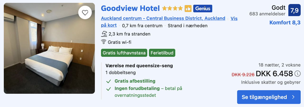 Husk at logge ind / oprette en gratis bruger på Trivago samt hos Booking.com. Derved opnås den bedste pris!