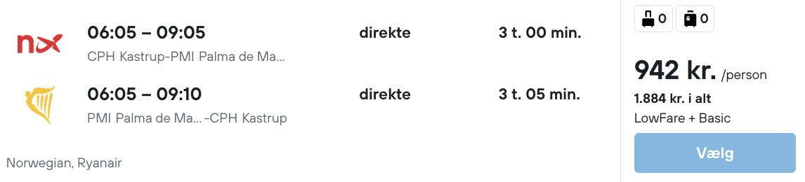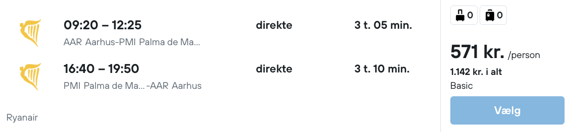 Flyprisen inkluderer kun en lille taske, men bagage kan tilkøbes.