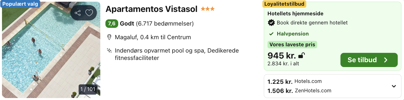 Hvis rejsen er med “Vis rejse” link, så er der tale om en pakkerejse, hvor fly og hotel bestilles på en gang.
