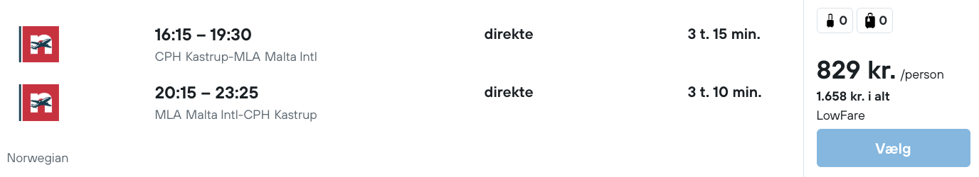 Flyprisen inkluderer kun en lille taske, men bagage kan tilkøbes.