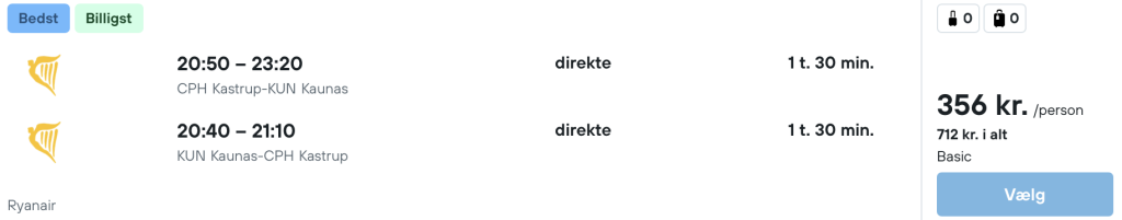 Vi har fundet billige flybilletter fra København til Kaunas: